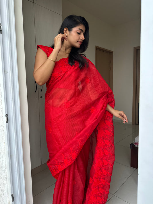 Taniya Cutwork Red Saree