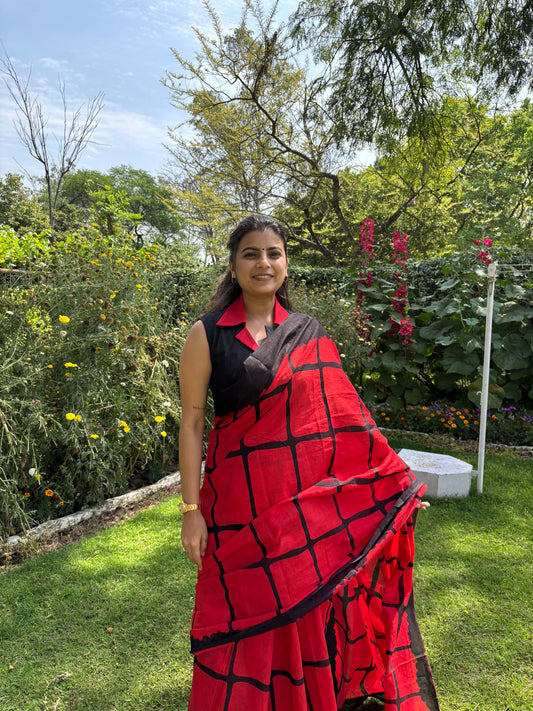 आलिया चंदेरी सिल्क लाल ब्लाउज