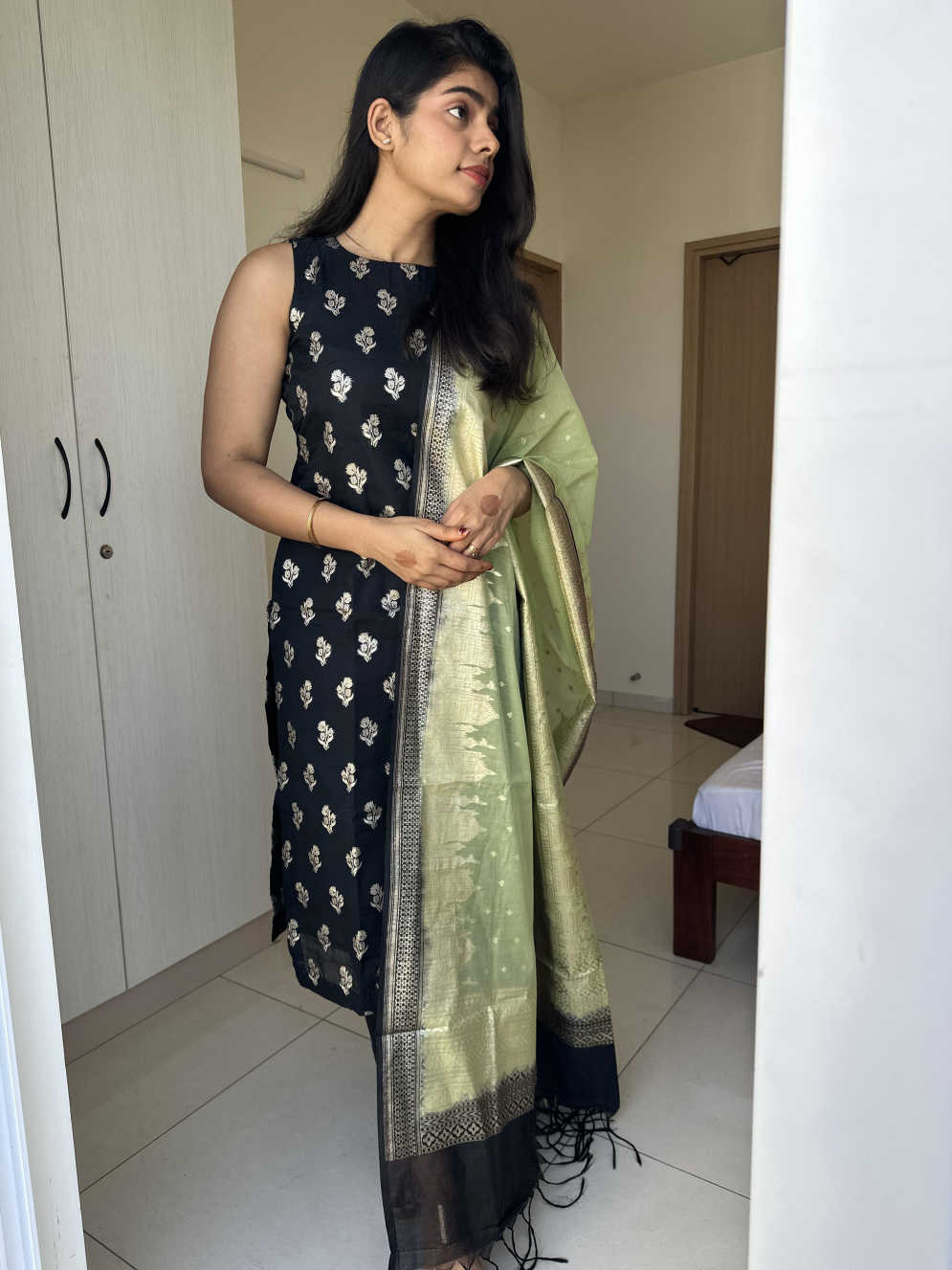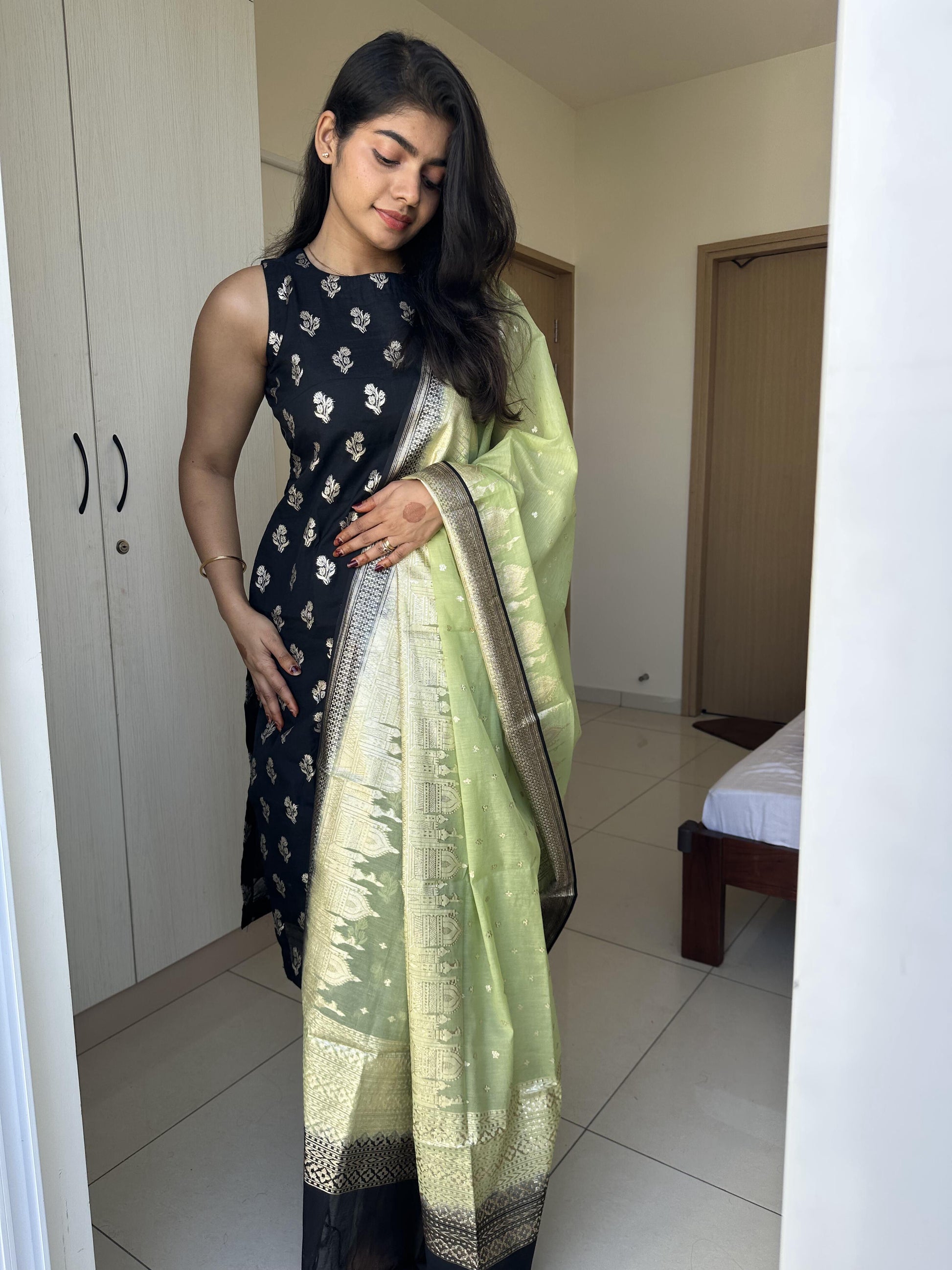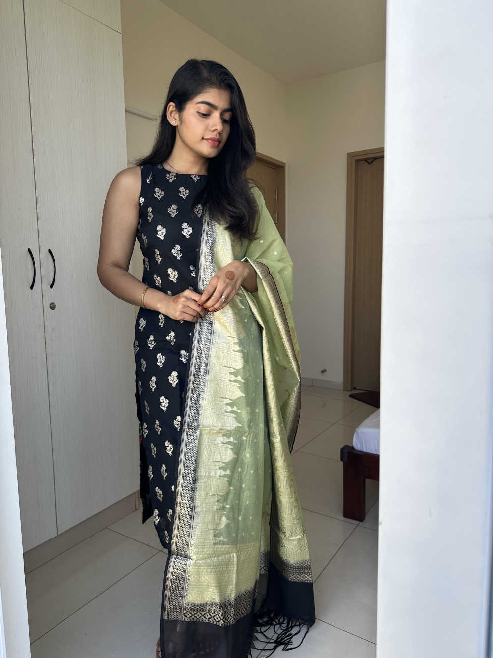 • कुर्ता और दुपट्टे का कपड़ा: चंदेरी सिल्क