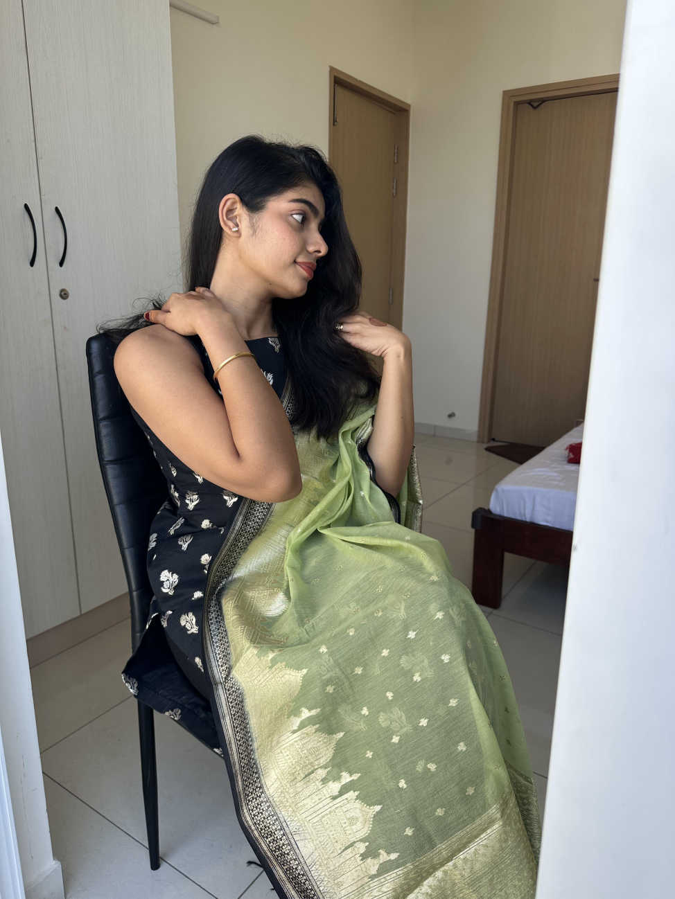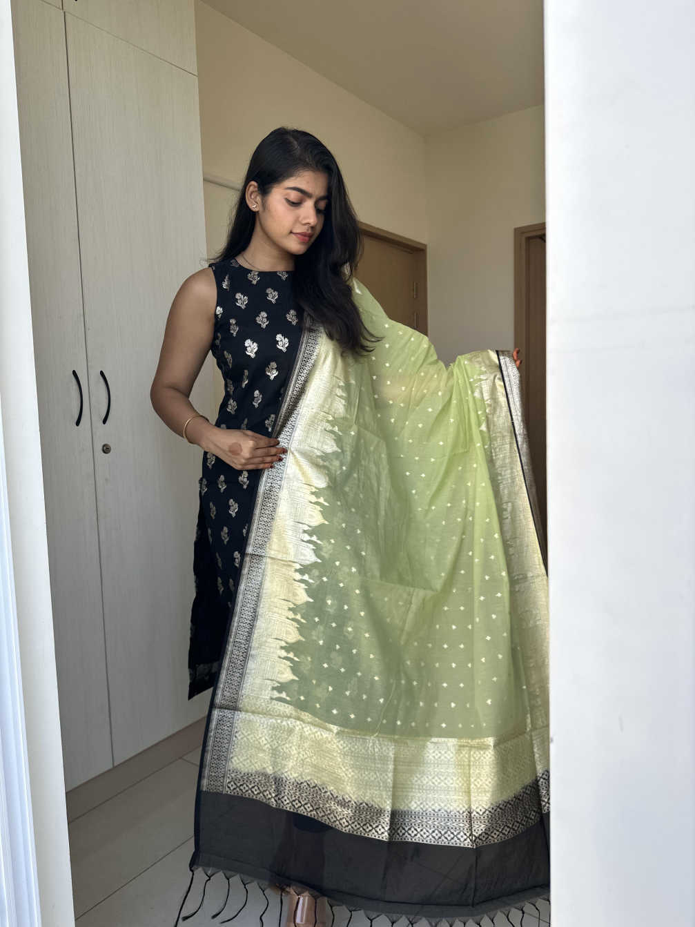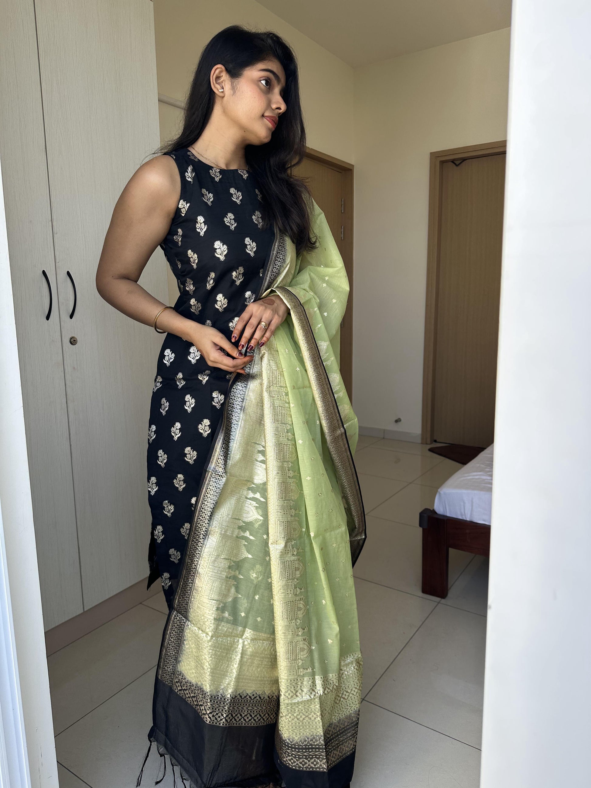 • कुर्ता और दुपट्टे का कपड़ा: चंदेरी सिल्क