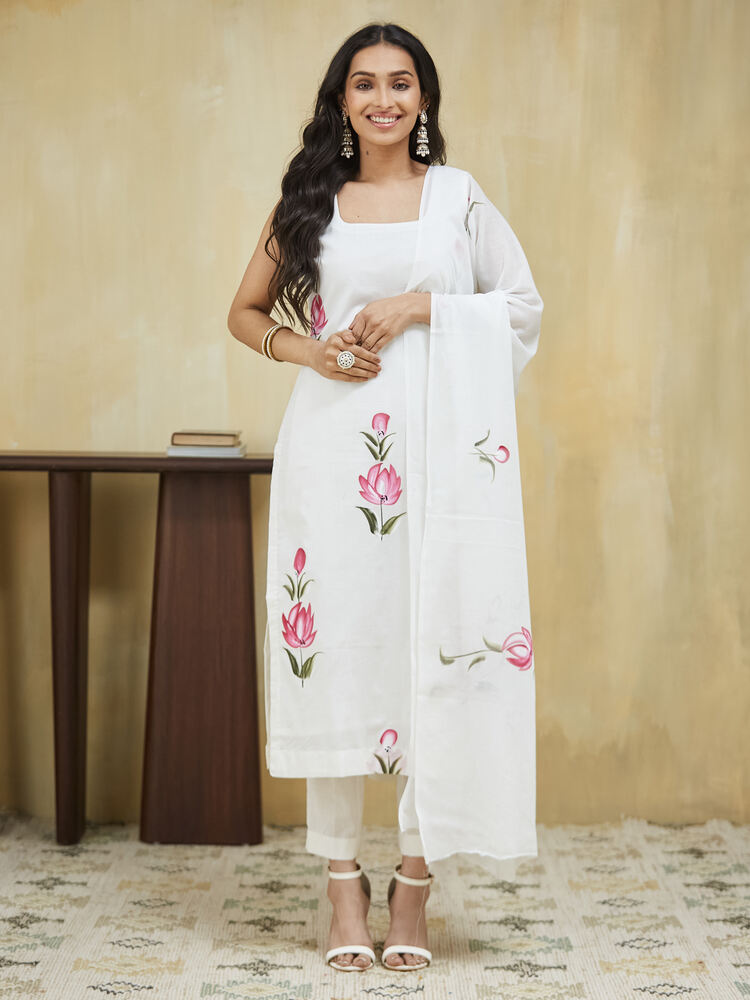 हाथ से पेंट किया हुआ बिना सिला सूती सूट