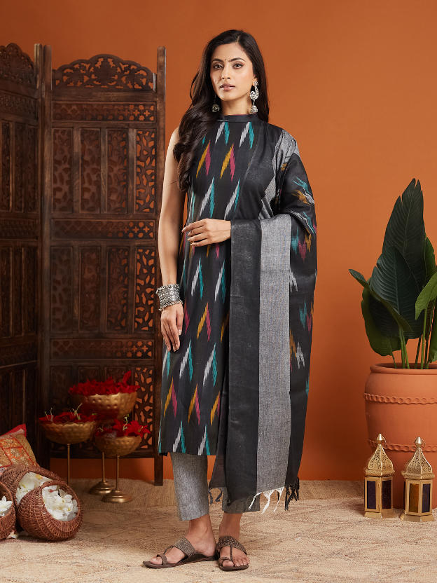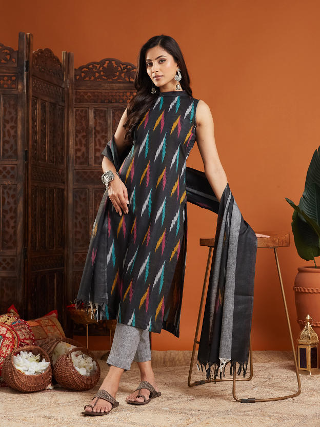 - कुर्ता और दुपट्टे का कपड़ा: कॉटन सिल्क