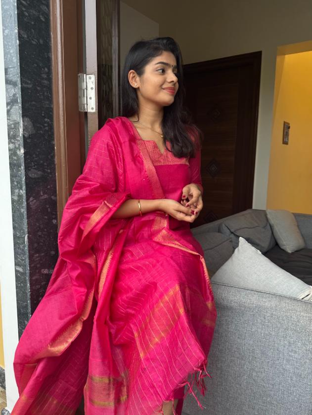 • कुर्ता और दुपट्टे का कपड़ा: कटान सिल्क