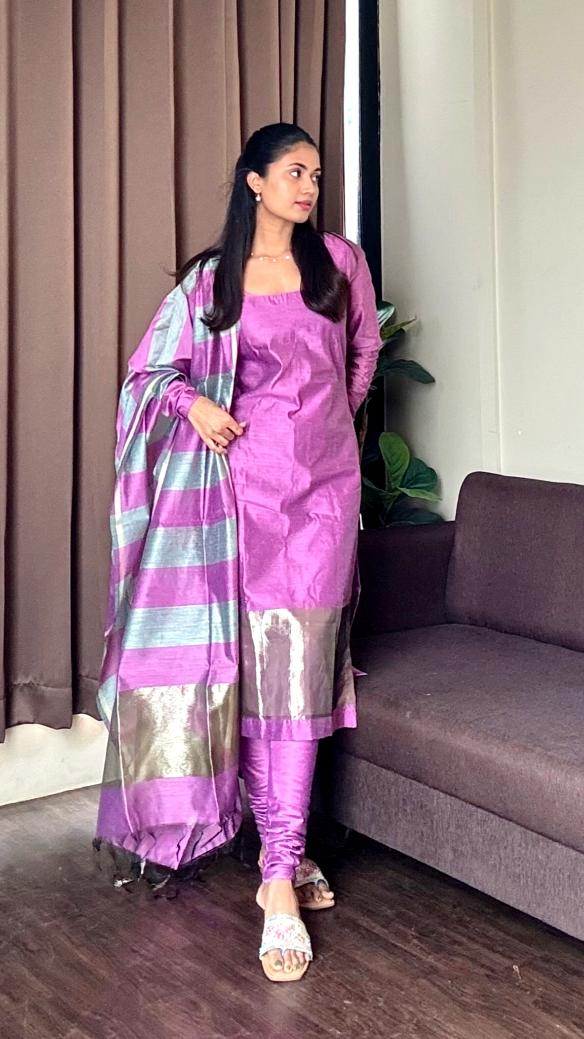 - कुर्ता और दुपट्टे का कपड़ा: कॉटन सिल्क
