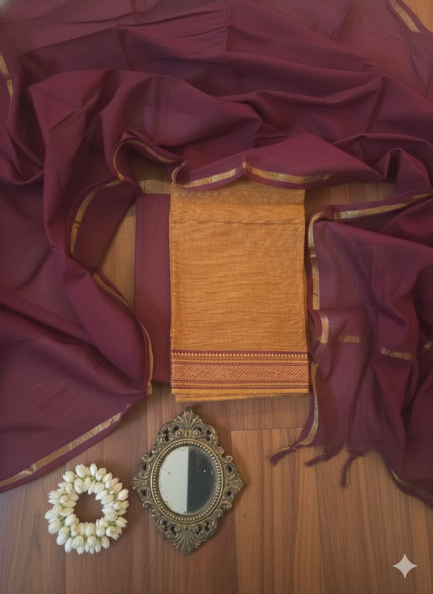 Ruhaniyat Mangalgiri Cotton Unstitched Suit Set