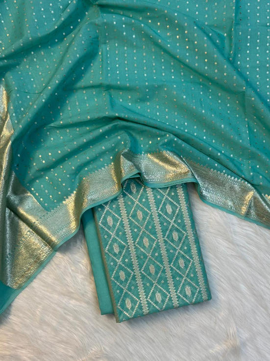 These are hand woven suit sets which undergo various processes by artisans and weavers, slight irregularities in the design should not be considered as defects.