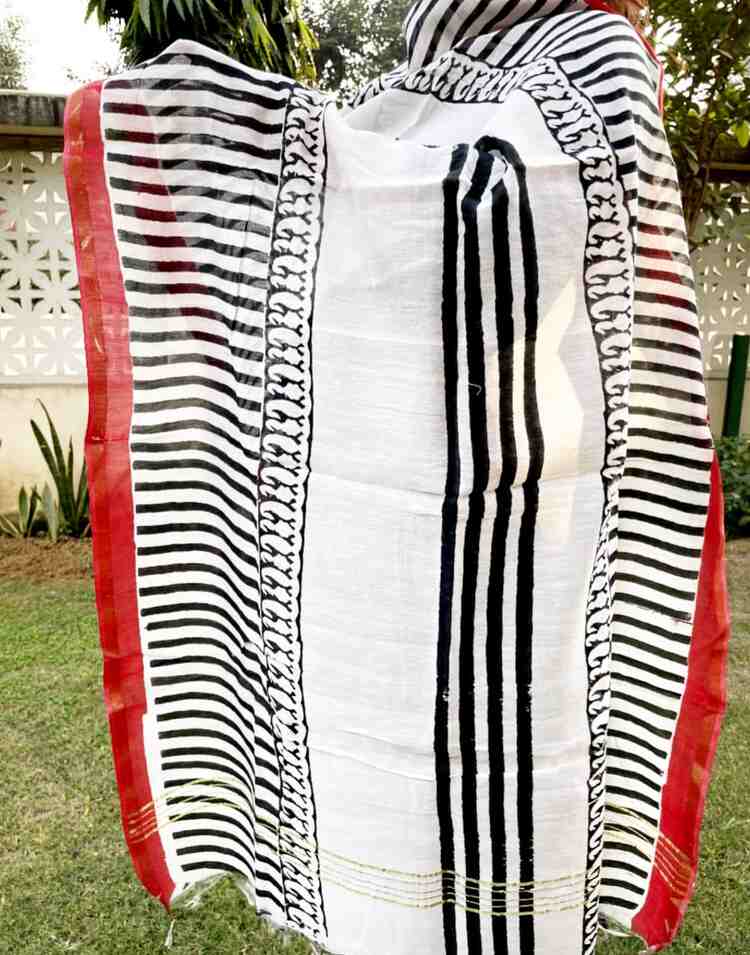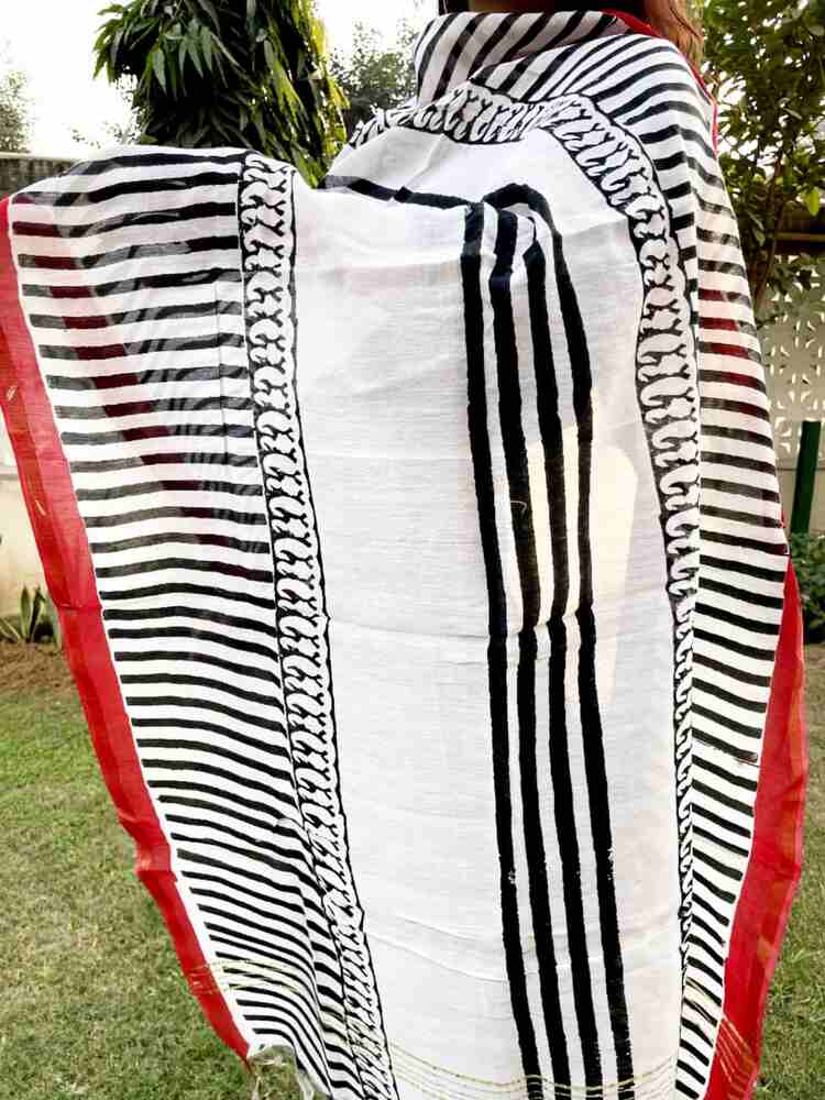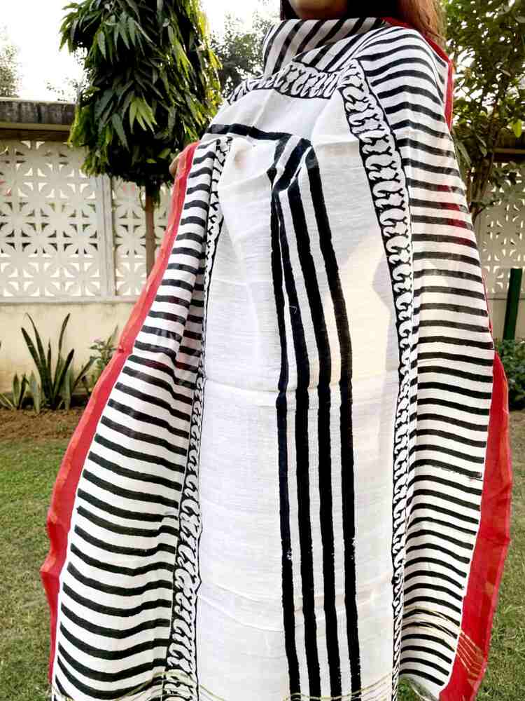 ఇవి బ్లాక్ ప్రింటెడ్ దుపట్టా, ఇది చేతివృత్తులవారు మరియు చేనేత కార్మికులచే వివిధ ప్రక్రియలకు లోనవుతుంది, ప్రింట్లో స్వల్ప అవకతవకలను లోపాలుగా పరిగణించకూడదు.